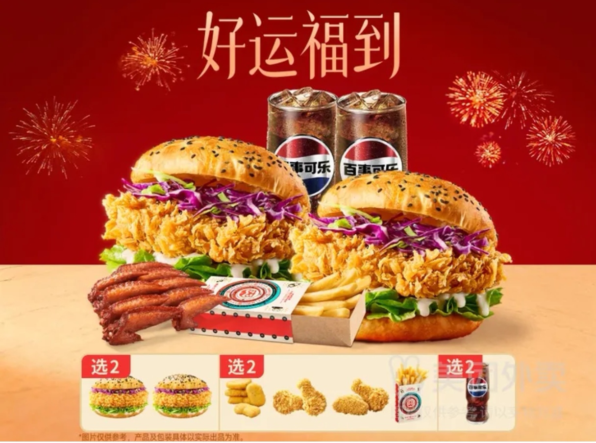 【好运福到】自选汉堡X2+自选小食X2+自选饮品X2