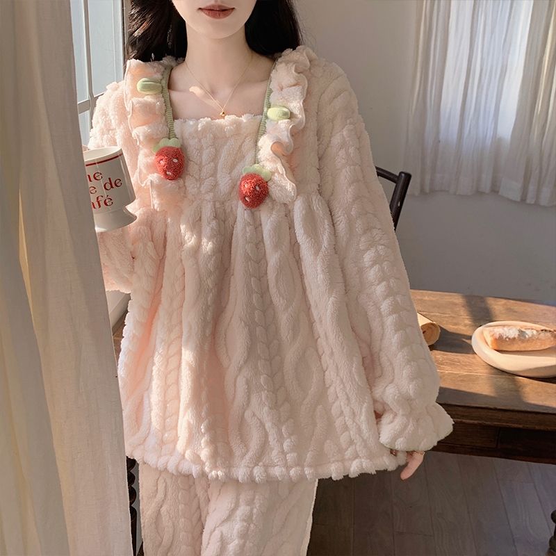 睡衣冬季女珊瑚绒公主风加绒加厚法兰绒套装春秋款长袖甜美家居服