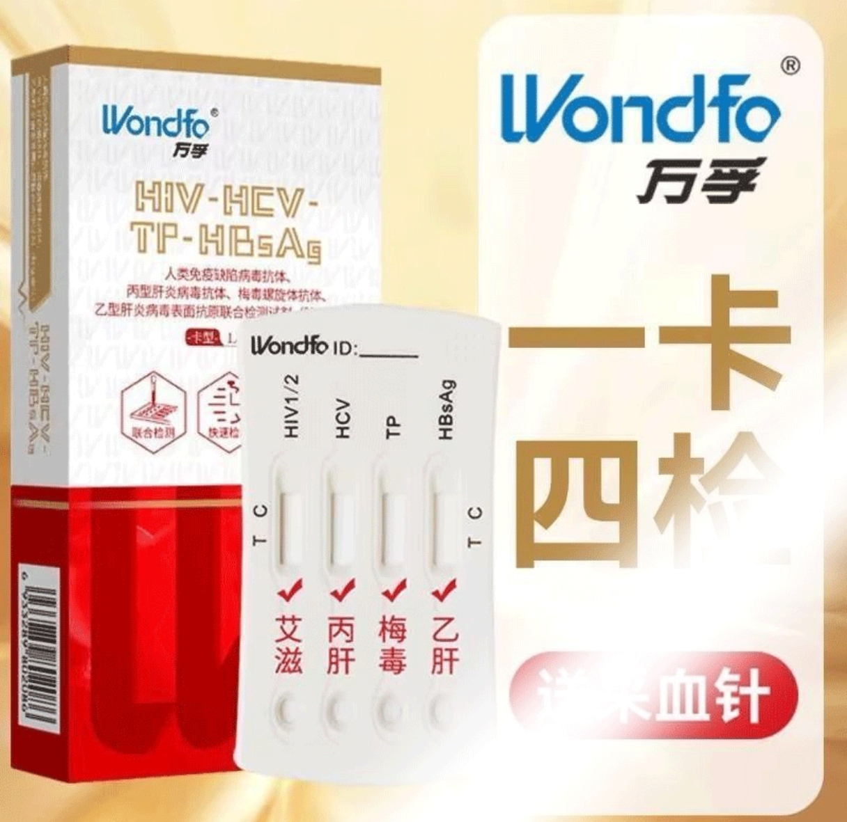 万孚四联卡四合一检测试纸艾滋传染病一次性检测试剂卡梅毒hiv乙肝丙肝专用检测卡1盒/份万孚四联卡艾滋传染病hiv检测