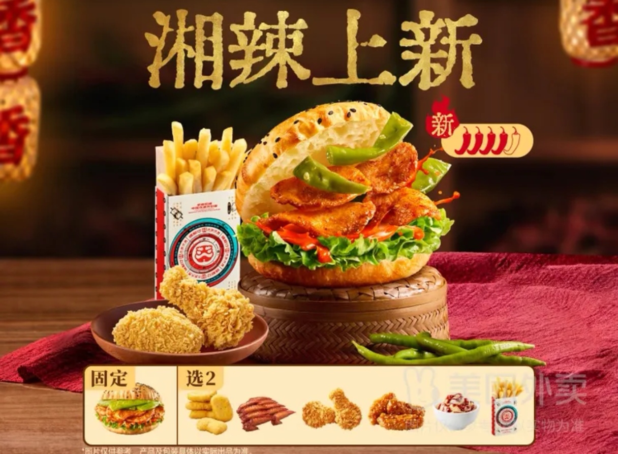【湘辣上新】香辣嫩鸡肉中国汉堡+自选小食X2