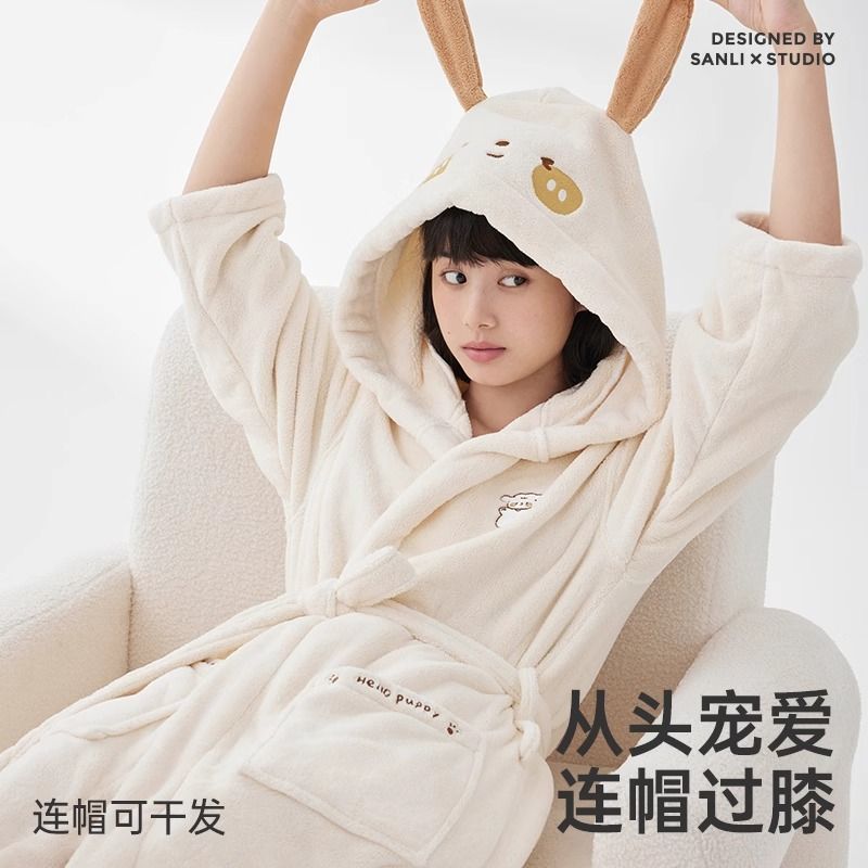 【三利】浴袍女吸水速干不易掉毛浴衣可爱珊瑚绒可穿浴巾加厚四季通用【10天内发货】
