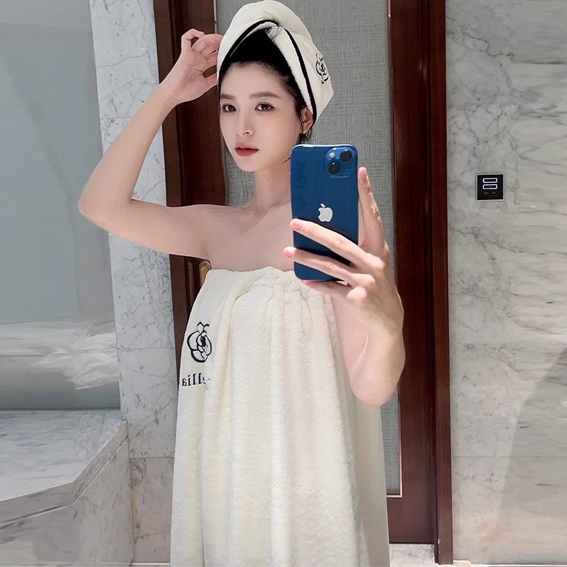 浴巾家用女可穿可裹巾2024年新款吸水女生浴袍露肩抹胸裙草莓浴裙